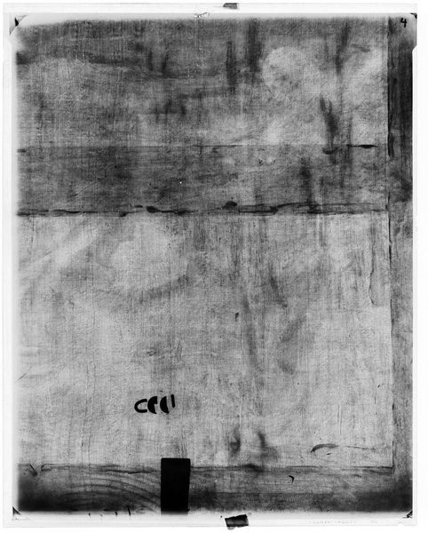 Curator: This is an x-radiograph of the painting "Emmanuel Joseph Sieyes," originally by Jacques-Louis David. Its stark grayscale evokes a sense of mystery and hidden truths. Editor: Intriguing. The texture of the canvas leaps out, but stripped of color, it almost feels like we are looking at the bones beneath the surface of power. Sieyes was a key figure during the French Revolution; can we glean any insight into his role? Curator: Certainly. David's portrait, now revealed through this radiographic lens, reflects Sieyes' complex position as both a member of the clergy and a revolutionary theorist. The ghostly image reminds us of the unseen forces shaping historical events. Editor: It's remarkable how this process allows us to deconstruct the image, revealing layers of history and meaning within a single frame. Curator: Absolutely, offering a unique perspective on the intersection of art, history, and revolutionary identity.