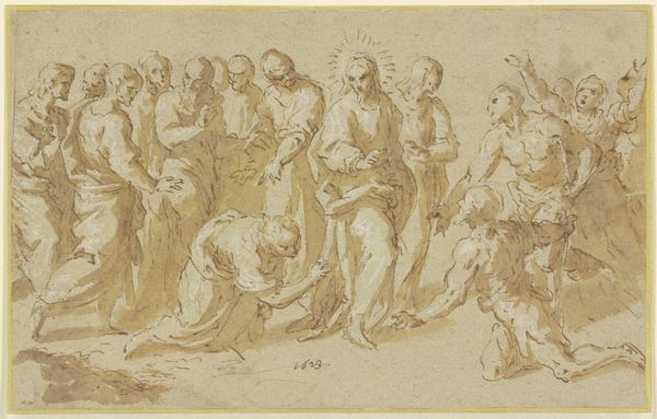 Curator: Right, let’s take a look at this drawing by Bartholomaeus Ignaz Weiss, dating roughly between 1750 and 1815. It’s titled "Study for a Nativity, Bearded Male Saint, and Head Studies" and you’ll find it on display at the Metropolitan Museum of Art. What springs to mind for you? Editor: My initial impression? It feels like catching a glimpse into the artist’s mind – a chaotic but beautiful sketch of swirling figures and half-formed ideas. I almost hear the scratching of the charcoal on the paper. Curator: That's beautifully put. Consider the context; this is a preparatory study, academic art focusing on biblical figures and portraiture. Weiss, working in that late Baroque/early Neoclassical period, was really grappling with historical painting, wouldn't you say? Editor: Absolutely! It feels very academic, like a page ripped from a student's sketchbook. All those faces staring back! It's oddly intimate, like I’m in a room full of quiet contemplation. Do you think there's an echo of earlier masters here, perhaps a hint of Renaissance workshops? Curator: Precisely! Weiss certainly echoes that tradition. If we think about representation, it's important to unpack those figures of authority: bearded patriarchs, the nurturing Madonna, angelic figures. They are loaded with social and religious significance. What would a feminist reading tell us? Editor: Good question. Maybe the real story is in the unformed sketches surrounding the central figures—the hints of individuality struggling to emerge from the imposed religious narrative. Or the comfort of those figures to become standards across multiple religious works; they aren't simply people at this stage but icons of what a saint should appear as. I mean, it has an effect that allows recognition no matter the work in progress. Curator: A vital point. These "types" solidify power structures but also demonstrate shared cultural understanding, across religions and cultures. This piece allows one to examine the nuances and social implications embedded within supposedly objective artistic exercises. Editor: It's interesting that we’re viewing both sides. The recto showing these drawings that we discussed and on the verso are another two head studies... Curator: Another glimpse, another story! This interplay underscores art making, art and the multiple layers involved in historical creation. Editor: Looking at this today, it makes me feel almost part of his learning process – connected. Thanks to Weiss!