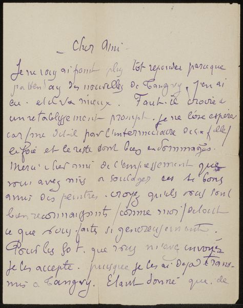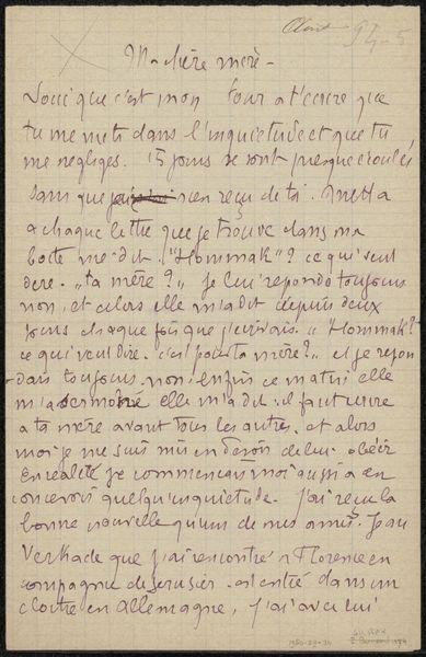 This is "Brief aan Héloïse Bernard-Bodin," a letter written in French by Émile Bernard on April 7, 1895. During this period, Bernard situated himself in Egypt, which had a profound impact on his artistic and personal life. Bernard’s letter reveals the social dynamics of the time, with the artist discussing familial relationships and societal customs following a death. His mention of local customs provides insights into the cultural norms of Egyptian society that might have influenced his worldview. The letter speaks of the anxiety and concern for loved ones, particularly in times of loss, reflecting the complex emotional ties that transcend geographical and cultural divides. As Bernard navigates a foreign culture, his letters home evoke a sense of displacement, a feeling of being caught between worlds. This piece becomes a personal reflection on universal emotions, highlighting themes of loss, cultural adaptation, and the intimate act of communication.