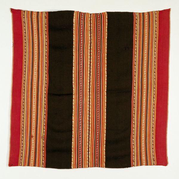 This Ahuaya textile, crafted by Sica Sica, pulses with visual symbols passed down through generations. Predominantly, we see parallel lines, in which the symbolic power lies in their arrangement and chromatic choices. Consider, for example, how stripes have been used across cultures: From ancient Roman togas, where they indicated status, to medieval heraldry, where they denoted lineage. The elementary figure of the line appears in a multitude of other patterns across continents and eras, where they may represent trade routes, the course of rivers, or even the connection between the earthly and spiritual realms. In this Ahuaya, the stripes in various colors resonate deeply, evoking subconscious associations with the earth, sky, and ancestral realms. Its creators and beholders tap into a collective memory, engaging with a symbol that echoes through the corridors of time. The Ahuaya reminds us that cultural memory is not linear; motifs reappear, evolve, and take on new meanings, connecting us to a rich, shared past.