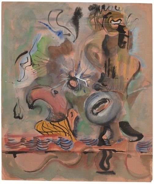 Victor Brauner made this painting, Totem of Blessed Subjectivity II, using oil on canvas. The way he layers these strange, organic forms, it's all about the process of building up a composition, not just depicting something. Look at the texture here, those smooth, almost fleshy colors against the dark, undefined background. The paint isn't trying to hide itself. You see the strokes, the layering. The colors, that pale pink against the almost toxic green, create this otherworldly, dreamlike space. And those sharp teeth, arranged so neatly...it’s hard to not see them as a metaphorical comment on digestion; of ideas, maybe. It's like Brauner is having a conversation with artists like Picabia, who reveled in the absurd. But unlike Picabia, Brauner seems more interested in a kind of personal mythology, a space where ambiguity isn't just a stylistic choice, but a way of seeing the world. It is what makes his work so compelling, so open to interpretation.