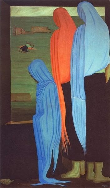 Leonora Carrington made "Portrait of the Late Ms Partridge" using oil paint and, like all of her works, with a kind of fantastical imagination. The first thing I notice is how confidently she handled the paint. It is applied thinly, almost like watercolor, and the colors glow from within. Look closely at the bird-like form. See how she uses layers of blue and brown to build up the texture of the feathers. There’s a sense of movement and energy in those brushstrokes, as if the bird is about to take flight. The figure riding the bird is a study in contrasts; the bold orange robe and elaborate blonde head-dress creates a striking focal point. A tiny detail, but I love the almost transparent quality of the figure’s bare feet, which suggests a sense of ethereality, like it is barely tethered to the ground. Carrington reminds me of Remedios Varo, another surrealist painter who embraced the mystical and the alchemical in her work. Like Varo, Carrington invites us into a world of dreams and symbols, where anything is possible and nothing is quite as it seems.