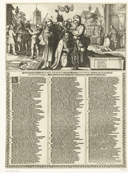This print, made around 1615 by an anonymous artist, is a scathing commentary on the papacy, rendered with the graphic precision of engraving. The choice of printing as a medium is significant here. The crisp lines and reproducible nature of the engraving allowed for the wide dissemination of its critical message, playing a crucial role in shaping public opinion during the religious conflicts of the time. Each line, carefully incised into the metal plate, speaks of deliberate labor, mirroring the perceived exploitation by the church depicted within the image. The material itself becomes a vehicle for political expression, with the very act of mass production serving as a form of protest against the excesses of religious authority. In essence, this work is a reminder that even the most seemingly straightforward materials can be powerful tools for communication, capable of challenging established power structures and sparking social change.