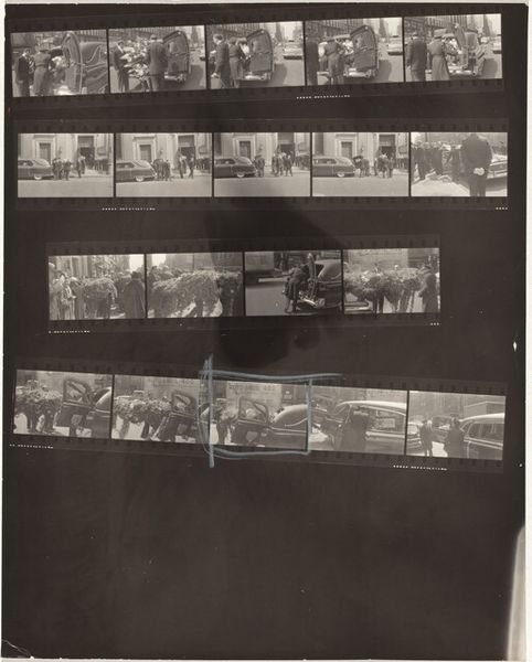 Robert Frank’s photographic contact sheet captures Giorgio de Chirico, the painter of unsettling metaphysical landscapes. Here, we see De Chirico not in the guise of his painted figures but as a man presented in the visual language of modernity: the photographic strip. Note De Chirico’s hand gestures. In one strip, he is placing his hand to his chest. It is an echo across centuries, a recurring motif found in portraits of emperors, saints, and statesmen. The gesture first appears in Roman imperial portraiture as a sign of authority and virtue. Later, Christian iconography adopts it, signifying piety and divine grace. Think of Renaissance portraits, where the hand-to-chest becomes a marker of sincerity and heartfelt emotion. In De Chirico’s case, it adds a layer of complexity. Is it a genuine expression, or is he self-consciously positioning himself within the historical lineage of portraiture? The gesture reverberates through time, charged with the weight of cultural memory, its meaning shifting yet still resonant. It embodies the artist's presence within a continuum of self-representation.