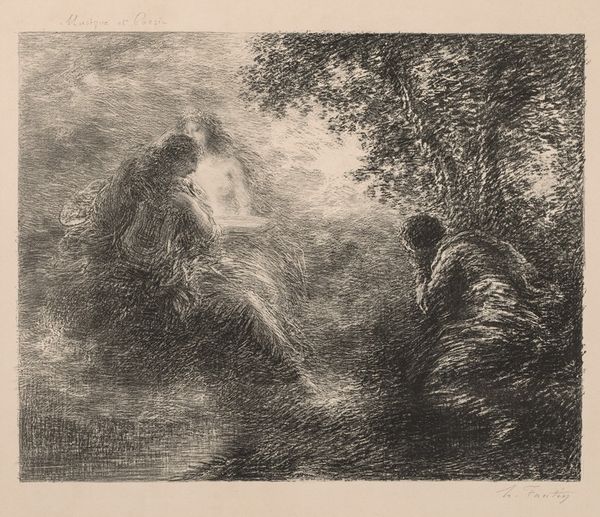 Odilon Redon made "He Raises the Bronze Urn" using lithography, a printmaking technique, which allowed for the mysterious qualities of light and shadow that mark Redon's style. The image evokes a dreamlike vision that reflects a broader cultural interest in the unconscious mind. Made in France, Redon’s image conjures a sense of ritual. A woman stands passively as a figure in dark robes raises an urn to the sky. It seems lit from above as if to suggest a moment of revelation. The ambiguity and symbolism of the print invite multiple interpretations. Redon was working during a time of immense social change and upheaval. The rise of modernity brought new ideas about science, psychology, and spirituality. Redon’s art is deeply rooted in his personal experiences and inner world, which he sought to express through his art. Redon worked outside the established academic art world, forging his path. As an art historian, it's tempting to look at how his individual history intertwines with the broader currents of his time. This involves studying the available literature, biographies, exhibition catalogues, and critical responses. Art, after all, is never made in a vacuum; it's contingent on its social and institutional context.
