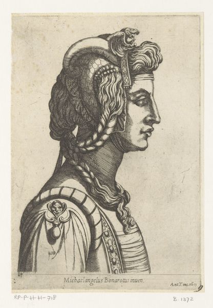 This engraving, made by René Boyvin in the 16th century, shows us a woman in elaborate costume. The method used here is crucial: engraving on metal, a process demanding meticulous skill. The artist would have used a tool called a burin to cut lines into a copper plate, creating grooves that hold ink. The plate is then wiped clean, forcing the ink to remain only in the incised lines. Then it is pressed onto paper, transferring the image. The result is a print with crisp, precise lines – ideal for capturing the intricate details of her fantastic headdress. Consider the labor involved: each line carefully carved, demanding hours of focused work. This print is not just an image, but a testament to the engraver's skill, and offers a window into the artistic and artisanal practices of the Renaissance. It blurs the boundaries between fine art and craft, inviting us to appreciate both the image and the process that brought it to life.