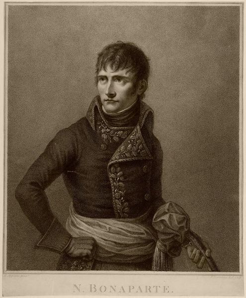 This engraving by Francesco Bartolozzi portrays Napoléon Bonaparte during his time as First Consul. Wrapped around his waist, we see a sash. This simple band of fabric carries the weight of power and authority. The sash has roots stretching back to ancient civilizations, where it symbolized rank and martial prowess. Think of the Roman emperors with their draped togas, or medieval knights girded with ceremonial belts. It's a motif that resurfaces again and again. The sash transforms from a practical garment to a powerful signifier. Here, it represents Bonaparte's authority, a visible manifestation of his control. The weight of history and the ambitions of a nation, all cinched together. It touches a deep, subconscious level, engaging viewers with an understanding of power. As Bonaparte's legacy evolved, the sash became further intertwined with his image, a constant throughout his rise and fall, evolving in significance with each chapter of his life.