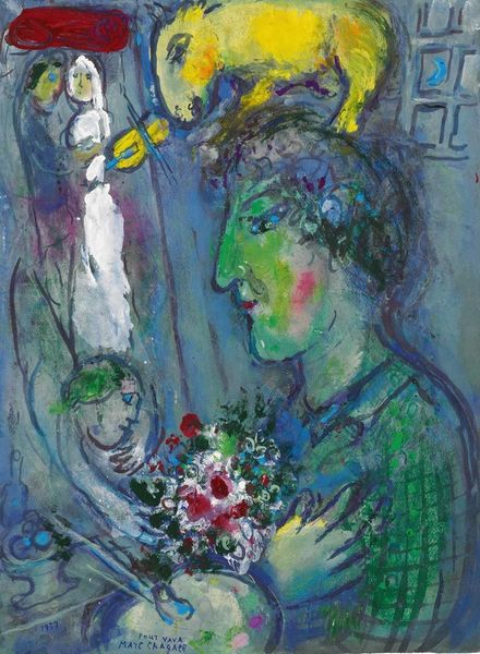 Editor: Here we have Odilon Redon's "Woman with Pillar of Flowers," painted in 1903. The soft, almost dreamy quality is really striking, and she looks quite melancholy. How do you interpret this work? Curator: Redon's symbolism is always so compelling. I see this piece as an exploration of feminine identity within the confines of early 20th century expectations. The "pillar of flowers," so centrally located, feels symbolic of the societal pedestal women were placed upon, both idealized and restricting. Do you notice how the woman gazes downward, almost avoiding connection? Editor: Yes, now that you mention it, there’s a real sense of disconnect in her posture. The pillar seems almost separate from her, a burden rather than a source of strength. Curator: Exactly. Consider also the Post-Impressionist context: artists moving away from strict representation, towards expressing inner worlds. Redon is giving visual form to the internal conflicts women of his era might have faced – the tension between expectation and individual desire. Is there a sense of rebellion beneath the surface? Editor: Perhaps that downwards gaze isn’t just sadness, but also a subtle act of defiance? The impasto, the textured application of paint, seems to vibrate with unspoken feelings. Curator: Precisely! And those ‘handmade’ qualities—as identified by some analysis of Redon’s works – connects us with labor and class, in the domestic space too, and women in that period were mostly stuck doing the same things! The flowers, potentially symbolizing beauty and fertility, are also slightly decaying around the edges. The entire painting creates such ambivalence. Editor: I never considered those historical issues until you pointed them out. Thank you, this has provided a new appreciation! Curator: Likewise! It's always rewarding to find modern connections within historical artworks, viewing them in their socio-historical, theoretical frames.