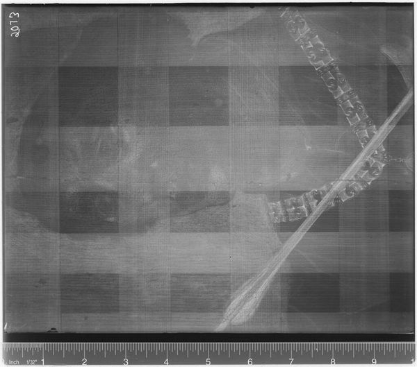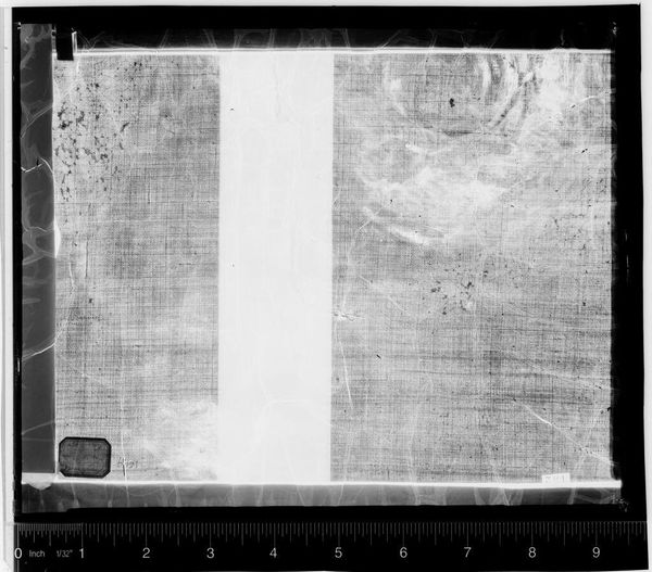 Editor: This is an X-radiograph of "St. Sebastian," attributed to the School of Antonio de Saliba. It's a rather ghostly image. What do you find most striking about it? Curator: It's a peek beneath the surface, quite literally! The x-ray unveils secrets – pentimenti, areas reworked by the artist. It speaks to the artist's process, a sort of dialogue etched in lead white. What whispers do you hear within this hidden layer? Editor: I guess it shows the painting’s history, like an archeological dig but for art. I hadn't thought of art in that way before. Curator: Exactly! It reminds us that art isn’t just a finished product, but a journey. I like that.