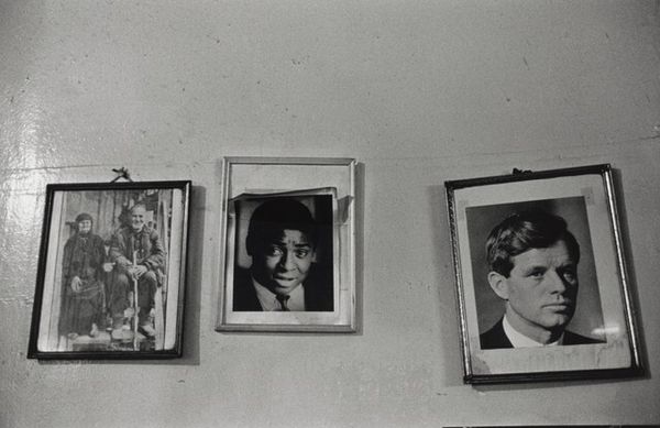 Robert Frank’s photographic print, "Andrea and Pablo," presents a slice of domestic life through a stark lens of black and white tonalities. The composition balances geometric forms with textural contrasts, focusing on the interplay between light and shadow. The photograph’s structure invites a semiotic reading. The children, silhouetted against the television’s glow, symbolize a generation immersed in media. Above, a framed portrait suggests a contrast between idealized images and lived reality. Frank uses the formal elements of composition to explore themes of family, media consumption, and the pervasive influence of visual culture. The grainy texture and high contrast contribute to the image's raw, immediate feel, while the composition's asymmetry disrupts traditional notions of balance. Ultimately, Frank’s work operates within a broader discourse on the role of photography in shaping perceptions of reality. The arrangement of elements reflects the complexity of modern life, where personal narratives are increasingly mediated through technology and representation.