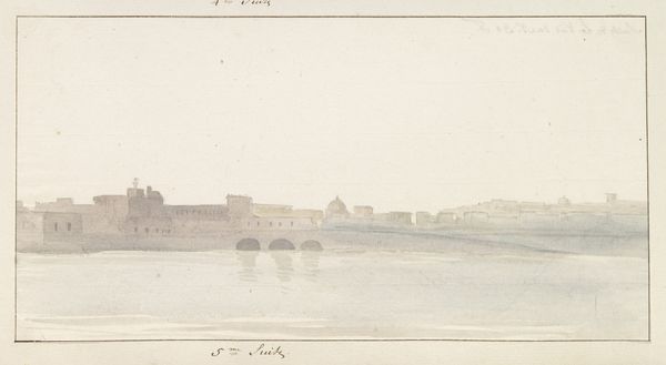 Curator: William Henry Fox Talbot created this dreamy landscape, "The Bridge of Orleans," sometime between 1843 and 1845. The photograph, an albumen print, now resides at The Met. What strikes you initially about this composition? Editor: The overall pale tonality creates such an ethereal effect—almost like looking at a memory fading over time. The repetition of the bridge arches gives a good structure, yet the image remains subdued. Curator: Absolutely. Focus on those arches and the line they form: it provides an unwavering horizontal against the softness of the water. Note also the meticulous arrangement of light and shadow – especially how the light seems to almost dissolve the stone into mist. Talbot clearly understands how to manipulate photographic tones for a painterly effect. Editor: I agree it feels pictorial. I'm immediately considering how the bridge—both a physical and symbolic connection between places and people—serves as a metaphor within the broader societal context of 19th-century France, specifically around issues of class and mobility. Did it bridge divides? Curator: Interesting idea. If we turn back to its formal components, the placement of the city on the horizon lends a sense of balance. Talbot, I believe, wishes for a harmonious order – the bridge becomes the method through which we view an idealized world. Editor: Or perhaps, considering France’s social and political unrest during this period, maybe the haze hints at obfuscation, veiling rather than clarifying societal structures. Whose gaze is even privileged here? Who is free to move across that bridge, and who is forced to observe it from afar? Curator: Your questions are valid, however it should be recognized Talbot was not documenting unrest, but pioneering a technology. He’s exploring the tonal range and how to produce a stable photographic image, after all. It is more about aesthetic exploration rather than critical commentary. Editor: Perhaps. It is precisely the romanticism of this landscape, this dreamlike aesthetic, which raises further concerns for me. Talbot's artistic license risks erasing real social issues happening at the time. We should never ignore historical context. Curator: Your reading enriches my understanding of the photograph. Indeed, this highlights art’s multifaceted nature. It serves as a testament to Talbot’s artistry, and prompts reflection upon a world ripe with inequality, rendered indirectly through tone and shadow. Editor: Precisely. The visual whispers across time can teach us about power. The beauty can contain difficult truths.