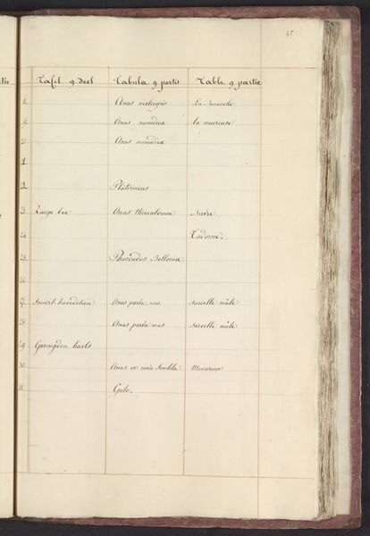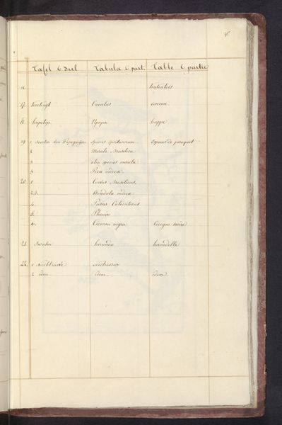 This handwritten list of flowers, made by Joseph van Huerne, presents a structured overview of floral names across different languages: 'Vlaemsch,' 'Latijn,' and 'Frausch'. The star at the top left, often a symbol of guidance or importance, highlights the significance of botanical knowledge during the Enlightenment. The act of cataloging plants extends back centuries. Consider the medieval illuminated manuscripts where botanical illustrations were intertwined with religious and medicinal knowledge. This impulse to classify and understand nature's bounty resonates even today in modern scientific databases. The ordering of names across languages reveals a deep connection to classical traditions and the burgeoning scientific study of botany. Note the emotional weight implicit in this endeavor. Humans, driven by both curiosity and necessity, have long sought to categorize the natural world and unlock its secrets. The tension between the beauty of nature and the human quest for control echoes through time, shaping our understanding of the world and ourselves.