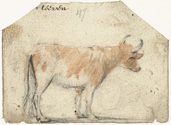 Curator: Editor: Alright, next up we have "Goat" by Jacob Jordaens, a colored pencil and charcoal drawing from around 1657. I'm struck by the animal's averted gaze; its posture seems almost defiant, even a little humorous. How do you interpret this work? Curator: Well, let’s unpack that “humorous defiance.” Jordaens was a master of Baroque dynamism, but also of social commentary. What power dynamics do you see at play here? Consider the era, the rampant inequality, and the use of animals as symbols within those hierarchies. Does the goat represent something more than just, well, a goat? Editor: You're thinking maybe it's symbolic, standing in for some oppressed group? Or a critique of those in power? Because, yeah, there's something about its averted gaze. It isn’t submissive. Curator: Exactly. Baroque art often used allegory to address social and political issues. This seemingly simple drawing of a goat might be a commentary on class, privilege, or perhaps even resistance. Think about the context: 17th century Flanders, a society rigidly structured. How could Jordaens, through this seemingly harmless subject, be challenging the status quo? Editor: So, the choice of a "lowly" goat becomes significant. It’s like Jordaens is giving voice to the voiceless, using this animal to subvert expectations and make a statement about the social order. Curator: Precisely. And isn’t it interesting that he chose to portray the goat’s backside, denying the viewer the typical frontal, perhaps idealized view common in portraiture? What does it mean to literally turn one's back on established norms? Editor: Wow, I hadn't considered that. The "backside" view disrupts the usual power dynamic between the artist and the subject. Curator: It does. This perspective allows Jordaens to challenge our assumptions about representation and meaning. Editor: I see the drawing in a whole new light now. It's more than just a study of an animal; it's a powerful piece of social commentary. Thank you! Curator: Indeed. And by recognizing these layers of meaning, we enrich our understanding not just of art history but of the enduring power of art as a tool for social change.