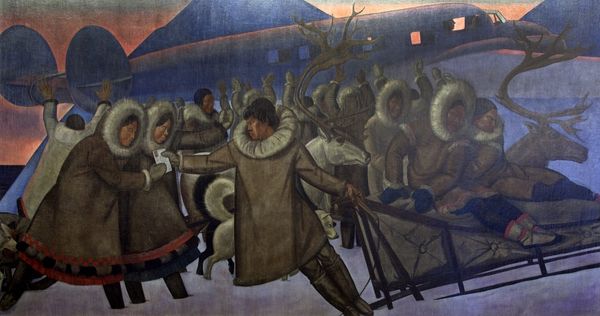 Candido Portinari made this painting, "A primeira missa no Brasil," presumably with oils, though it’s the kind of image that makes you wonder what else he might have mixed in there. There’s this incredible tension between the flat shapes and the figures, which are modeled with a kind of lumpy, raw physicality. Look at the priest’s hands raised in blessing; they're built up with thick strokes, each dab and smear alive with energy, like he's literally shaping the air. The palette is earthy, browns and grays dominating, but punctuated by these bursts of brighter hues in the clothing of the kneeling figures. It makes me think of Léger, but with a kind of feverish intensity. Portinari definitely had something to say about power, faith, and colonialism. The ambiguity, and the roughness somehow makes it more affecting.