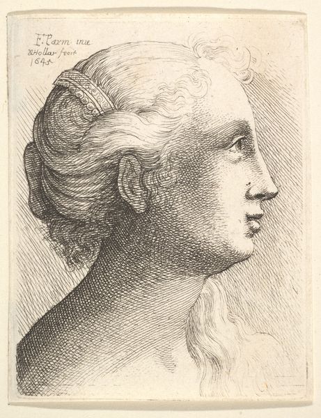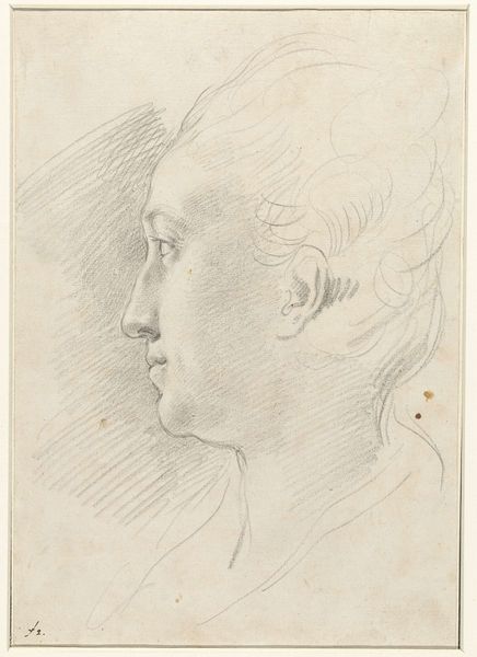 Marcus Tuscher rendered this portrait in muted tones of graphite on paper. The delicate lines and shading are arranged to capture the profile of a man, possibly the art collector Baron Philip von Stosch. The tight composition draws our attention to the sitter's face, framed by the elaborate curls of his wig. The artist's hand is evident in the varied textures created by the pencil strokes. Notice how the shading around the face and neck gives a sense of depth and volume, while the hatching in the background flattens the plane. The use of line is also particularly striking. The sinuous curves of the hair contrast with the straighter lines defining the sitter’s nose and lips. This contrast creates a visual rhythm. Such visual structures offer insight into the cultural codes of the time. Here, the emphasis on symmetry and idealized features reflects the period’s interest in classical forms, a visual expression of order and reason. Ultimately, the portrait’s enduring appeal lies in its ability to balance formal rigor with a subtle hint of the sitter's personality. This interplay between structure and expression continues to invite interpretation.