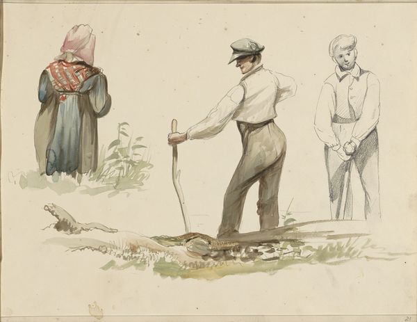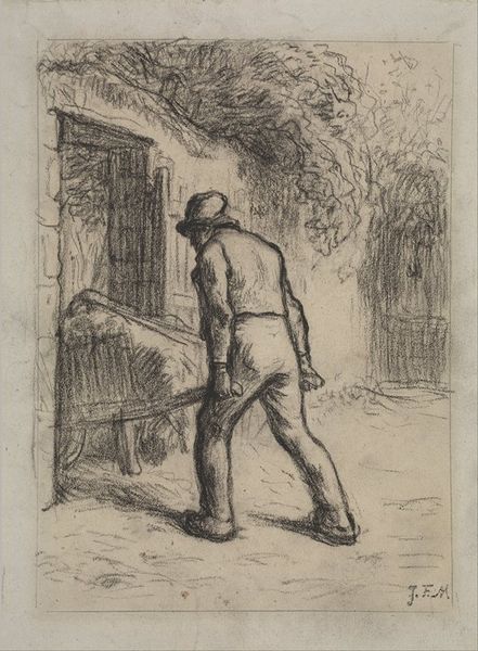 Edwin Austin Abbey made this watercolor and ink illustration of a man hoeing a garden in 1868. The nature of the materials – paper, pigment, and ink – lends itself to capturing an immediate impression. Here, Abbey depicts labor. The man’s body language suggests an active engagement with the soil, reflecting a culture deeply rooted in agriculture. The choice of watercolor and ink emphasizes the transient nature of the scene, capturing the fleeting moment of a man's interaction with the land. The loose brushwork and subtle color variations contribute to the sense of immediacy and informality. It's as if Abbey sought to capture the essence of labor – the physical effort, the connection to the earth, and the quiet dignity of everyday life. By focusing on materials, making, and context, we can appreciate how an artwork transcends traditional boundaries, inviting us to consider the broader cultural, social, and historical forces that shape its creation and reception.