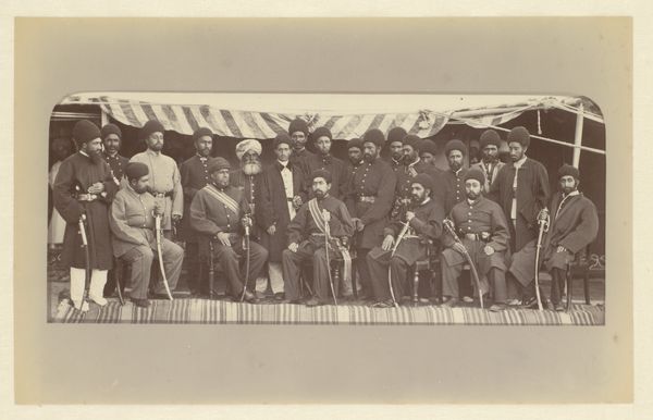 Here we see Alexander Gardner's photograph, "Indians with Government Agents," capturing a moment laden with cultural symbolism. The indigenous individuals, some adorned with traditional dress, stand or sit alongside men in Western suits, creating a stark visual juxtaposition. The arrangement is no accident. The seated figures might evoke the act of negotiation. Yet, the body language suggests something else is at play. There's a tension, a guardedness. This can be compared to other images of diplomatic meetings across cultures where posture, dress, and spatial arrangement were key to understanding power dynamics. Even the most innocuous details, like the Western suits and the indigenous clothing can echo back to ancient signifiers of tribal identity or imperial authority. The composition, too, bears consideration, it brings forward the emotional and psychological undercurrents of cultural exchange and colonial tension. The image’s power lies in its ability to engage us on a subconscious level, prompting reflection on themes of identity, power, and the enduring legacies of cultural encounters.