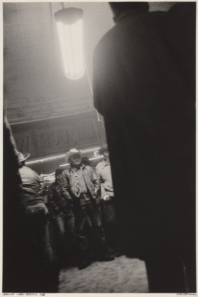 Curator: Looking at this vintage photograph, you immediately sense Károly Escher's playful spirit in this self-portrait from around 1932. Editor: Absolutely, it's playful yet kind of eerie, like a mirror maze reflecting multiple realities all at once. The grid in the foreground almost traps you, makes you conscious of observation. Curator: Escher offers such a curious perspective here, doesn't he? It's an upward shot in monochrome. He's got a fedora on, holding his camera. In the reflections, we get these fractured perspectives... bits of other people caught unaware. Editor: Yes, the hat… it feels so self-aware. There's a shadow right above Escher’s head, which, from my point of view, functions as a crown—a crown of smoke and mystery. Does the grid pattern lock up Escher's view to suggest a hidden intention or goal in plain sight? Or a prison in reverse, as his vision breaks from being locked within by spreading in multiple ways? Curator: The use of photography as the medium speaks volumes too. Here's Escher capturing his own likeness— but also playing with the truth inherent to the process of capturing the instant through reflected angles that hint at surrealistic tendencies. In other words, he doesn't need to paint an entirely imagined reality— reality itself contains enough uncertainty when presented at an odd angle. Editor: He presents not only the visible but an emotional response, an atmosphere, so much so that you can almost reach through it to discover all that lurks behind these selves within a self. Károly Escher presents our image reflecting in all directions—past, present, and future. Curator: Thinking about how images, especially self-portraits, solidify identity... I find the deconstruction presented here very affecting, as though our singular "self" is actually constructed by an assembly of momentary interactions with others, a social media long before its invention. I find the photograph, in sum, full of both charm and genuine artistic insight. Editor: Precisely! A meditation on perception and representation and how symbols themselves are a reflection. Thank you.