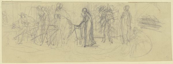 Editor: This is "Konverserende selskab," a pencil drawing made between 1746 and 1828 by C.A. Lorentzen, housed at the SMK. It feels like a glimpse into a hushed gathering, almost like we're intruding on a private moment. What do you see in this piece? Curator: I see a reflection of power dynamics subtly embedded within this genre scene. The gathering, likely of the bourgeoisie, performs social rituals designed to reinforce their status. Consider the attire, the postures—each detail is a carefully constructed symbol. Who holds the power in this space, and how is that power expressed? Editor: So, you’re saying it's not just a casual gathering, but a statement about societal structures? It seemed so light at first glance! Curator: Exactly. Think about who is included and, perhaps more importantly, who is excluded. How does the artist's choice to depict this scene in such a loose sketch further comment on these issues? The unfinished quality, in a way, hints at the artifice of these social constructs. Does this informal style somehow subvert the scene it depicts? Editor: That makes sense. I was focusing on the artistic style and not on the people portrayed and their historical context. Curator: Precisely! By placing the artwork within a sociopolitical context, we are encouraged to look at it with a fresh lens. Think of feminism: what role might the women present play in these conversations? Editor: I guess there's so much more to unpack in a simple drawing than I originally thought. Considering power dynamics completely changes my perception of it. Curator: Absolutely! This is how we can establish dialogues between art and contemporary issues of inequality and representation. Every detail serves to construct a narrative far exceeding the simple visual pleasure it offers. Editor: Thank you! I'll remember to look beyond the surface and delve into the cultural and societal contexts from now on. Curator: And I am glad we could connect social and art history today!