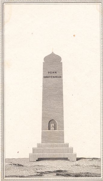 Curator: Before us we have J.F. Clemens' "Saxo", an engraving and etching from 1779-1781, here at the SMK. Editor: It has such a strange, stark stillness. It reminds me of an abandoned monument on a desolate shore, but rendered in a precise, almost mathematical way. Very odd, like a fever dream of geometry! Curator: Precisely. Clemens employs a neoclassical style to represent a monument dedicated to Saxo Grammaticus, a Danish historian and theologian. Note the focus on line and form, devoid of excessive ornamentation – quintessential Neoclassicism. Editor: So, even the emptiness is intentional! I see, the geometric form dominates, suggesting perhaps an intellectual edifice, something purely of the mind... it gives an odd sensation, maybe cool logic is dominating the raw passion of human emotions. Curator: Yes, that interpretation resonates. Geometric shapes often carry weight signifying rational structure versus the organic messiness of human existence. The engraving style itself, the lines forming shapes, becomes part of that symbolic language. We perceive not just an image, but a whole cultural sensibility emphasizing order and reason. The past rendered in a way meant to promote values associated with enlightened progress. Editor: True! And there is a subtle melancholic quality. A monument inherently points to a past that cannot be reclaimed... this really strikes home, with each sharp line and severe angle cutting into any illusion of warmth. Even remembering something has its risks, I suppose. Curator: Memory, and history, viewed through the cool lens of the Enlightenment. Clemens provides a window into the way that past was not simply recorded, but also reconstructed. Editor: Thanks to Clemens and his... calculated emotion. This piece is a haunting reminder of how reason itself can become a kind of passion, capable of shaping our perception and molding our memories. Curator: A chilling, yet insightful consideration as we examine our relationship with the past, wouldn't you agree?