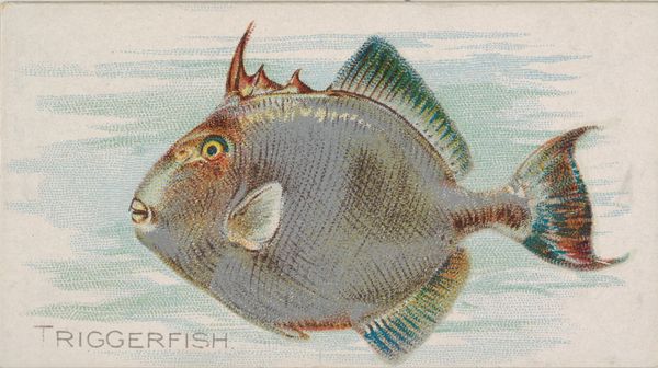 This is a promotional card from the Fish from American Waters series by Allen & Ginter Cigarettes. At its heart lies an image of the moonfish, presented with a curious juxtaposition: above, the fish in its serene aquatic realm, and below, a small boat with a bright red flag that cuts a stark contrast against the ocean's blue. Consider the color red, an almost primal symbol. It pulsates through history, from prehistoric cave paintings to medieval heraldry, signifying vitality, danger, and power. In the boat's flag, red becomes a beacon, an assertion against the sea’s vastness. The moonfish itself, with its flattened body and reflective scales, appears as a mirror to the moon, a cosmic symbol of change and the subconscious. Its presence might evoke ancient myths of sea deities and the hidden depths of the psyche, where primordial emotions stir. The pairing of the red flagged boat with the moonfish connects two realms: the human world of ambition and the mysterious, unknowable depths of the sea. It speaks to the enduring human desire to navigate and comprehend the enigmatic forces of nature, a quest that continues through time, evolving yet forever rooted in our collective memory.