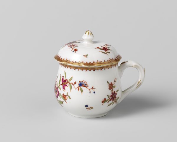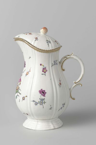 This teapot and milk jug are part of a tea service made by Koninklijke Porseleinfabriek Dommer & Co. The pieces are made of porcelain, a refined ceramic material prized for its whiteness, translucency, and ability to take delicate forms. Porcelain objects are made by firing clay at extremely high temperatures. The process often involves casting the material into molds, as evidenced by the teapot’s smooth, rounded form and repeated details. Decoration is added on top of the fired surface, with hand-painted floral swags and gilded details. These colorful additions contrast beautifully with the bright white body of the teapot, and would have been quite eye-catching in their time. Notably, these are decorative objects, rather than sculptural ones, and would have been at the center of social rituals and display. The decoration of these pieces speaks to wider social issues of labor, politics, and consumption, as the hand-painted decoration would require a team of skilled artisans. By understanding the materials, making process, and original context of the teapot, we gain a deeper appreciation for its historical and cultural significance.