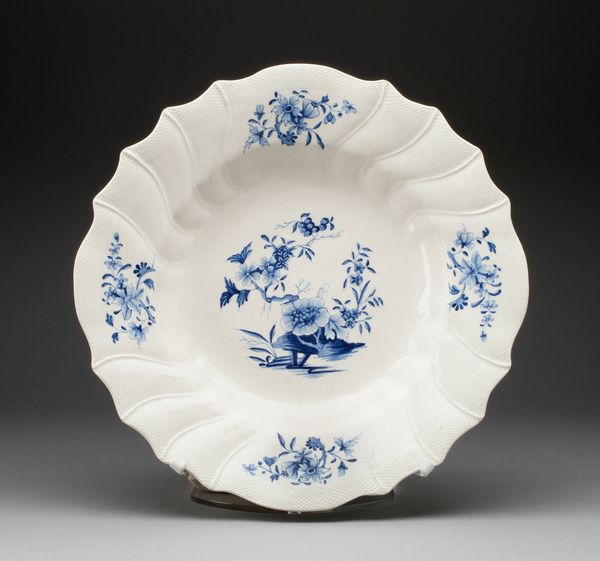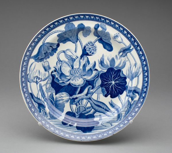 This plate was made at the Wedgwood Manufactory, but we can't date it precisely. The blue and white floral decoration recalls the ‘Willow Pattern’ that became ubiquitous on British ceramics from the late 18th century. The pattern was itself a Western appropriation of Chinese porcelain design. It emerged as British companies like Wedgwood attempted to compete with imports from China. By adapting and re-circulating Chinese motifs, ceramics producers sought to capture a wider share of the market. Often these designs were applied to new forms made for a European context, such as this plate. The ‘Willow Pattern’ therefore reflects a complex cultural exchange that occurred as the British Empire expanded its reach into Asia and sought to dominate global trade. Historians of design and material culture draw on a range of archives to explore these transcultural connections.