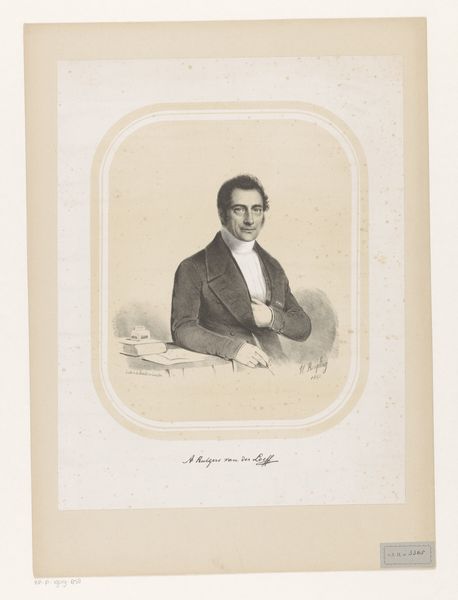 Curator: Here we have a print dating from 1840 to 1855, identified as a portrait of Heinrich Wilhelm August von Gagern by Johann Georg Nordheim. The medium is engraving. Editor: My first impression is one of profound seriousness. The somber color palette really contributes to the overall feeling of introspection and authority, would you agree? Curator: The limited palette of greyscale enhances our appreciation of the complex formal elements—the artist utilizes fine lines to convey subtle textures, creating a range of tonal values from dark to light. The play of light and shadow articulates both form and content, constructing a convincing image of a sitter and lending three-dimensionality to what would otherwise be a flat composition. Editor: Indeed, it does look as though meticulous planning and execution went into it. It prompts one to wonder: what labor conditions and workshops enabled such finely detailed prints in that era? We can also speculate about its initial consumption. How was the creation of portrait prints embedded within larger manufacturing, trade, and consumer networks? The textures visible—the sitter’s wool jacket or even the textile upon which his hand rests—hints at class and consumer culture. Curator: Good point, though it would be careless not to also notice the sharp geometric lines defining his jacket—in contrast with the round shape of the back of his chair. These contribute to an internal structural organization that brings balance and tension to the whole piece. The very specific way his dark suit is juxtaposed with his white shirt draws our attention to the person—and what his expression may suggest about his station, temperament, and perhaps even ambitions. Editor: Beyond aesthetics, what kind of sociopolitical role could the printing of such portraits have had at that particular moment in German history? Curator: An interesting perspective. Editor: So true, the convergence of technique and sociopolitical messaging adds layers of significance. Curator: I see your point; an intersection between craft, history and meaning, so to speak. Editor: Exactly. I think our considerations add an unexpected dimension to what may seem like a formal work at first glance.