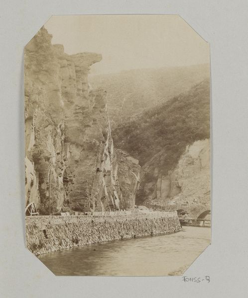 Curator: This gelatin-silver print, entitled "Pickering Tor, Dove Dale" dates from the 1880s and was created by Peter Henry Emerson. Editor: It possesses a contemplative serenity. The monochromatic palette focuses my attention. There is an almost dreamlike quality to the diffused light and reflections in the water, wouldn’t you agree? Curator: Absolutely. I think we see Emerson working through his adherence to naturalistic principles, emphasizing photography as an art form. He was a vocal advocate for what he termed "naturalistic photography," arguing against manipulating photographs in the darkroom. Editor: The vertical thrust of the rock face –the 'tor' itself – creates a powerful focal point. Given the title and date, the 'tor' might act as an archetypal representation of endurance and permanence, a pre-industrial symbol set in opposition to an ever modernizing world. Curator: Yes, and I see how that tension of natural and artificial spaces played out in Emerson’s time, specifically through considering Victorian society’s impact on nature through industrialization and urbanization. Editor: And culturally too. Dove Dale was then becoming increasingly popular with tourists... Did that have an influence on him? Curator: It could have certainly played a part, I wonder if, Emerson attempts to freeze a moment of pure, untouched nature for posterity. Maybe that explains why he was so dead-set against manipulative processes in printing—believing in the "natural." Editor: Indeed. Perhaps it highlights humanity’s desire to commune with an untouched sublime nature, despite knowing its increasing unobtainability. Curator: This single image speaks volumes about the intertwined histories of photographic technique and cultural anxiety. It really demonstrates just how powerful photography can be! Editor: It offers so much for the thoughtful eye! A testament to the enduring power of symbolism and timeless landscapes.