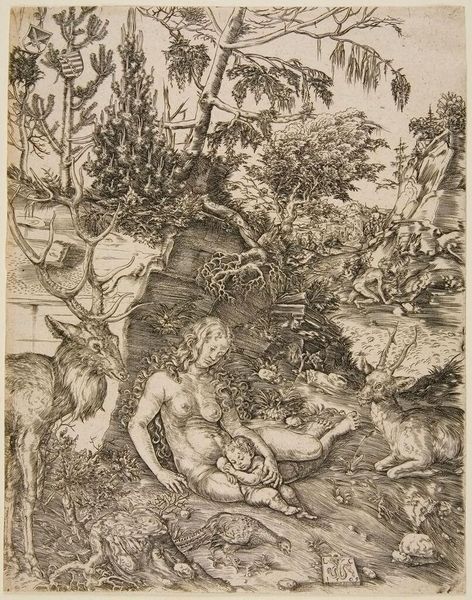 Editor: Here we have Lucas Cranach the Elder's "Adam and Eve." It is brimming with symbolism. I'm curious, what socio-political narratives do you see embedded within this depiction of the Fall? Curator: Well, consider the period. Cranach, aligned with the Reformation, presents a stark contrast to the Catholic Church’s visual narratives. How might this image challenge the established power structures related to gender and knowledge? Editor: So, Eve’s agency in taking the apple could be seen as a challenge to traditional patriarchal interpretations of the story? Curator: Precisely! And note the serpent’s placement. It could symbolize not just temptation but also the disruption of social hierarchies. It invites us to question who truly holds power and knowledge. Editor: That reframes the whole narrative for me. I hadn't considered that angle before. Curator: It’s about recognizing how art can reflect and challenge prevailing ideologies.