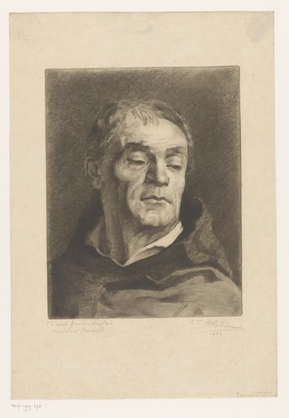 Curator: Here we have "Head of an Old Man, Facing Right," a compelling charcoal drawing attributed to Victor Müller. It resides here at the Städel Museum. Editor: It has such a pensive mood. The charcoal rendering lends this air of contemplation, and you immediately get the sense that the artist captures someone burdened with years of life experience. Curator: Indeed. Let's consider this work within the framework of 19th-century portraiture. How might we understand Müller’s approach to portraying aging, class, and the male subject, thinking about it in the context of evolving gender roles and societal hierarchies of the era? Editor: From my perspective, it is essential to first examine the tools, the materiality that makes it come alive. Look at the nuances in the charcoal application itself, varying pressure, smudging. Müller coaxes incredible textural contrasts using just charcoal, light against shadow, age, depth; the skill involved speaks volumes. I’d wager he employed a range of charcoal hardnesses and types, maybe even experimented with blending agents on different papers to build up those striking features. Curator: I find your focus on materiality insightful; considering that the sitter is presumably of an older generation and working-class due to his worn look, does the very deliberate, crafted medium also reflect a particular gaze and the values ascribed to labor? It allows us to reflect critically on how art perpetuates social narratives. Editor: Definitely, but I think it emphasizes his labor. The artistic act, rendered laboriously with the very elemental tools and material gives it depth, adding humanity to this older man's portrait, while being fully conscious of the material’s implications during its time. The labor, I think, reveals and elevates him and allows us to connect. Curator: Thank you. A valuable insight into how material agency allows narratives of aging and value to be constructed and perceived! Editor: Absolutely! Understanding material choices as artistic action enhances our overall understanding.