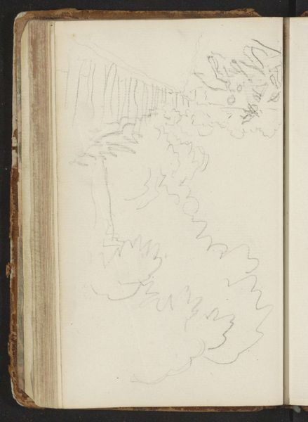 Editor: Here we have Niels Larsen Stevns's "Bølgestudie (?)," made sometime between 1864 and 1941. It’s a pencil and graphite drawing on paper. My first impression is a flurry of energy, a real sense of movement. It reminds me a bit of musical notations. What do you see in this piece? Curator: Ah, yes! Movement, scribbled energy… It’s funny you mention music. I see this less as a direct depiction of waves and more as a record of the *feeling* of waves. Stevns isn't necessarily trying to give us photorealistic waves; instead, it feels like a fleeting, impressionistic response. Do you ever feel like some moments can't be captured in perfect detail, only in the echoes they leave behind? Editor: I think so, that makes sense! So, you’re saying it’s more about the sensation of the waves, rather than the literal waves themselves? It does look like he quickly jotted down some notes... I'm struck by the difference between the wilder, almost chaotic lines at the top compared to the calmer ones below. Curator: Exactly! It makes me wonder about the specific conditions in which he created this. Was the sea particularly rough that day? What was he feeling? Perhaps even thinking? And that contrast you pointed out – it adds depth, doesn’t it? Almost as if the 'wilder' lines are the wind crashing around our ears while the 'calmer' ones evoke the deeper currents and quiet swells underneath. Editor: I didn’t think about it like that, that is a lovely detail. Now, when I look at the 'wilder' lines at the top, it reminds me of birds in flight, perhaps sea gulls? Thank you for pointing it out; it completely reshaped my view of the sketch. Curator: My pleasure! Sometimes art just needs a little nudge to spark a new thought, don't you think?