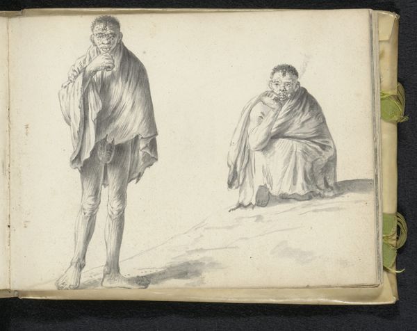Esaias Boursse sketched "Sinhalese soldier and a squatting labourer" with pen in the 17th century, amidst the Dutch colonial presence in Ceylon, now Sri Lanka. Boursse, employed by the Dutch East India Company, offers us a glimpse into the power dynamics of the time. The soldier, armed and erect, stands in stark contrast to the hunched, vulnerable figure of the laborer. There’s a palpable tension in their positioning. What does it mean to see these two figures, representatives of labor and military might, juxtaposed in this way? This work prompts us to consider the emotional and physical toll of colonialism on the local population. The laborer's posture speaks volumes about subjugation and loss, set against a backdrop of colonial expansion. It reminds us to consider the personal stories embedded within broader historical narratives.