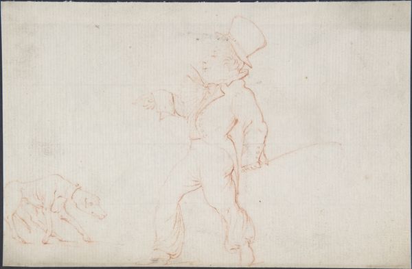 Editor: This is Stefano della Bella's "Standing Cavalier, Pointing with Right Hand," a pen and ink drawing on paper. It feels like a quick sketch, almost like a fashion plate with that dramatic pose. I'm interested in what it says about the time it was made. What's your perspective? Curator: I see an intense engagement with materiality and production. Consider the immediate availability and relative low cost of paper, pen, and ink in Della Bella’s time. The swiftness of line suggests not just a study of form, but also an understanding of how to efficiently represent status through clothing and pose, ready for dissemination, perhaps through printmaking. How does the labor involved here challenge our notions of 'high art' versus craft? Editor: So you're saying the *means* of production matter as much as the image itself? It feels different than looking at a painting… Curator: Precisely. This isn't solely about aesthetics or individual genius. The drawing functions as a commodity. Consider, too, the social context: what class of people wore that particular kind of clothing? Whose labor produced those garments? Editor: It’s like, through the drawing, we see a whole system of production and consumption… even a reflection on the cost of fashion in early modern Europe. Curator: Exactly. By examining these choices in material and reproduction, we gain insights beyond the figure depicted. What’s left out also holds value; who is able to obtain fashion and what this accessibility reveals about social power structures. Editor: I see that now. I never really considered how the materials could tell their own story. Curator: It is about making sure not only who is included is noticed, but what. Thank you for your insights as well!