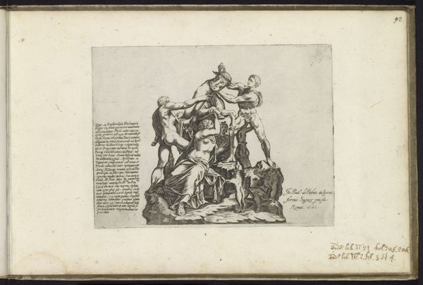 Curator: This graphite drawing, aptly titled "Sculptuur van Laocoön en zijn zonen," believed to be created sometime between 1538 and 1641, renders a classic scene in striking detail. Editor: What a knot of anguish! The light and shadow are so delicately handled, yet it's almost violent, watching these figures coiled and constricted. You immediately sense the weight of a legend, a cultural trauma made tangible. Curator: Precisely. The piece captures the moment Laocoön, a Trojan priest, and his sons are attacked by sea serpents. This imagery resonates with themes of divine punishment and the fall of Troy, representing a turning point in classical history and influencing artists throughout the Renaissance and beyond. The use of graphite creates an impressive array of shading to suggest musculature. Editor: Musculature strained to the absolute limit. The artist's rendering captures the primal terror in the eyes, the contorted faces – an echo of screams. One can almost feel the damp chill of the serpent's scales. Tell me, what did this subject signify to viewers of the time? Curator: Well, depictions of Laocoön often served as warnings against defying the gods or questioning fate. In this work, we also see Renaissance ideals of the human form colliding with baroque sensibilities of drama and motion. The dynamic tension emphasizes emotional impact. It’s fascinating how cultural memory and continuity live through such a powerfully charged image. Editor: And how readily these ancient narratives tap into something raw and visceral within us even now. Perhaps it is a warning. The artist does so well conveying themes that are more than what they seem; death, and despair. Curator: An enduring illustration of the profound interconnection between art and collective consciousness. Editor: Leaving us pondering the intricate tapestry of human emotion, then, threaded into art itself. A truly powerful note to end on.
