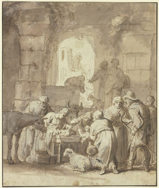 Franz Ludwig Catel’s painting ‘First Steps,’ captures a domestic scene, using oil on canvas, where a child tentatively walks toward a waiting figure. The composition is structured by the architecture that frames the scene. The arches lead the eye from the dark foreground, filled with earthy tones, towards the bright, open landscape in the background. The artist uses this contrast of light and shadow to create depth, and to highlight the figures central to the narrative. The scene is carefully arranged. The figures are placed to direct attention to the child, emphasizing the human connection and narrative. This arrangement invites us to consider the painting not just as a depiction of a moment, but also as a constructed space where human experiences are thoughtfully presented. It is this interplay between the constructed and the representational that forms the painting's core interest, inviting viewers to look beyond the surface and consider the underlying structures that give meaning to the scene.