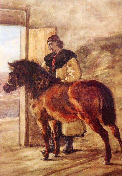 Editor: Okay, so here we have Gustave Caillebotte's "Yerres, Dark Bay Horse in the Stable," painted in 1878. It's oil on canvas, and it really gives off a sense of quiet strength, I think. There's something really beautiful in the mundane. What jumps out at you about it? Curator: It's true, isn't it? A sort of profound stillness. It's interesting how Caillebotte uses the Impressionistic style not for landscapes buzzing with life, but to capture this rather stoic, almost melancholy, creature. Does the horse seem relaxed to you? Or perhaps just resigned? Editor: I'm not sure. I mean, he doesn’t seem agitated, but… resigned, maybe? What makes you say that? Curator: Look at the light; how it glances off the horse’s flank. Notice, too, the sharp contrast with the shadowy interior of the stable. There is this incredible painterly language, but consider what the image is portraying. We are talking about industrialization, of course, but the artists, too, are considering life behind stable doors and asking themselves 'how free is this life, really'? What does it mean to be held? Do you think the artist wants you to ponder this tension? Editor: I hadn't considered the industrialization angle. I guess I was just focusing on the horse as a subject. Curator: Exactly! And that's precisely what Caillebotte wants us to do: connect emotionally with the animal. Feel its… predicament. To engage with a fine animal, perhaps to wonder: How do its dreams feel from inside that stall? Does it feel beauty when the sun streaks over its back? Editor: That’s a really moving way to think about it. I usually focus on the artist’s technique, but I guess there's a whole world of feeling that can be communicated in a single horse portrait. Curator: Absolutely. Art invites us to inhabit different perspectives, to feel with others—even, and perhaps especially, with creatures great and small. A dark bay, or any other!