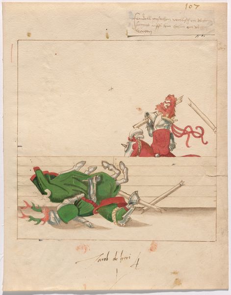 This is an anonymous drawing of a Mock Joust of War with Fixed Shields. We don’t know who made it, but we can imagine a context where it might have been made. The joust was a fundamental ritual of the European aristocracy. It was both a symbol of and a training ground for warfare, but over time it transformed into a complex performance of honor and identity. The combatants display wealth, skill, and chivalry in equal measure. While this drawing depicts a mock joust, the presence of elements like elaborate armor and noble steeds indicates the importance of spectacle and tradition. The drawing provides a lens into understanding the culture of medieval Europe and the values of its elite. It allows us to reflect on how societies construct and celebrate ideals of masculinity, honor, and power. It's a reminder of the enduring human fascination with both the theater and the reality of conflict.