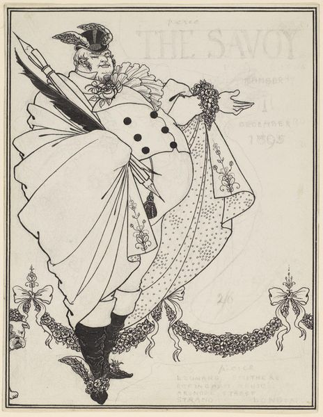 Aubrey Beardsley created this pen and ink drawing as the page preceding the contents list for Volpone, Ben Jonson’s satire of greed and deceit. Beardsley was working in London in the 1890s, a moment of great social change when the city's institutions of art, literature and theatre were being challenged. This illustration, with its opulent costume and grotesque figure, is indicative of the decadent movement, which rejected the conventions of Victorian morality. Beardsley delights in the artificiality of the theatre, mocking the pretension of the upper classes who attended such plays. His work reflects a desire to challenge the established norms of art and society. To fully appreciate Beardsley's social critique, we can examine periodicals such as The Yellow Book where much of his work appeared, and other documents that illuminate the cultural context of his time. Art history brings a critical understanding of the relationship between art and the prevailing social, political, and economic conditions.
