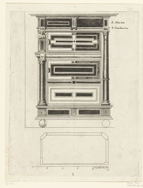 Curator: The image we're looking at is an ink drawing on paper, titled "Lijkkist van wijlen koning Willem II, 1849." It depicts the coffin of the late King Willem II. Editor: There’s an austerity here, even in rendering the opulence. The grey tones against the white background, combined with the subject, certainly evokes a feeling of solemn finality. Curator: The drawing gives a meticulous, almost architectural rendering of the coffin itself. Notice the detail given to the ornamentation, the miniature crowns adorning the corners, and the layers upon layers of the platform it rests on. The artist is really trying to portray the weight, literally and figuratively, of the monarchy. Editor: Indeed. Looking at it from today's vantage point, one must consider the implications. While presented as a somber depiction of loss, these symbols also carry cultural and historical power. The crowns, the multiple tiers—these are statements of social hierarchy, aren't they? How might the working class viewed it back in 1849? Curator: It's undeniable. And thinking about the historical moment, 1849, just a year after the wave of European revolutions... the piece captures a moment of shifting power dynamics and a clinging to traditional displays of authority. There’s also the implicit symbolism of the empty coffin: absence and the continuation of tradition at the same time. Editor: Right, tradition reinforced even, and perhaps especially, at the moment of supposed absence. It encourages a continuation of particular societal narratives. Curator: Perhaps this work, in its precise and unemotional portrayal, provides space for us to confront the continuing legacy of royalty. The coldness helps it function like a mirror to inherited social constructs, does it not? Editor: Yes. Its lack of emotion, the stark presentation of this elaborate symbol of power… it opens up possibilities to explore how these symbolic displays influence and reinforce existing social orders even today. Curator: Exactly. By laying bare these traditions, maybe we can engage with a deeper examination of the ideologies behind them. Editor: Well, it has certainly encouraged me to reflect on how we memorialize power. A timely consideration given our current political climate.