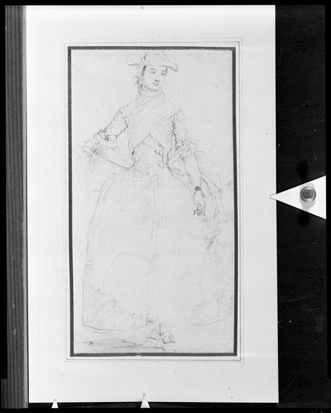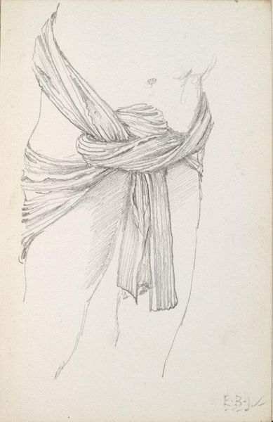 Editor: This is Pierre Henri's "Study for 'The Bathers'," a drawing. The figure seems suspended in time, the drapery adding a sculptural quality. What strikes you most about its composition? Curator: The dynamism in the contrast between the flowing hair and the static pose is most notable. The artist's masterful use of line and shadow creates a palpable tension. Do you observe how the fabric folds both conceal and reveal? Editor: Yes, the interplay is quite sophisticated. I see how the artist uses line weight to create depth, too. I hadn't noticed that before. Curator: Indeed, and it is through that depth that we might grasp the artist's intent to both capture a moment and render a timeless ideal. A figure study, but an eloquent one.