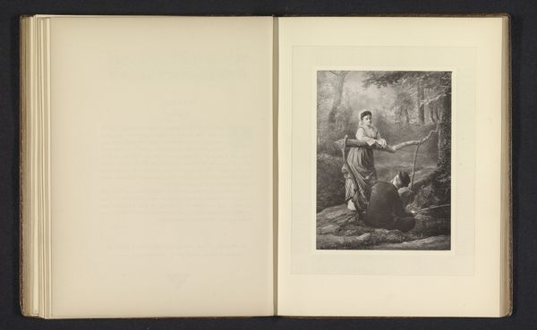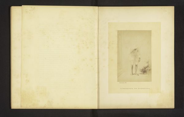 Curator: Ah, this is a fascinating piece from the Rijksmuseum collection. It's a photographic reproduction of a drawing, made by Johannes Christiaan d'Arnaud Gerkens before 1863. The subject is a young woman. Editor: It feels incredibly intimate, doesn't it? Like we're intruding on a quiet moment. The soft sepia tones give it this gorgeous, faded quality, and there's a gentle melancholy clinging to the scene, especially to the young woman. Curator: Absolutely. Considering the context of its creation—pre-photography boom, remember—portraiture served distinct social functions. Think about class, representation, and gender. This young woman is captured in a domestic, contemplative pose; we need to ask how this imagery reinforces or challenges societal norms of the time. Is she wealthy, idle, educated? What does her position communicate? Editor: It's funny you mention idle! She's leaning on a bench, gazing off… almost as if she’s daydreaming. She doesn't seem grand or important, though. Maybe there is even an emotional connection I can feel… but the backdrop seems unfinished or merely sketched, keeping her story ambiguous, wide open for the taking! Curator: That ambiguity is crucial. The drawing itself, and then its photographic reproduction, add layers to its interpretation. Photography democratized portraiture, in a way, yet the conventions of representation remained largely dictated by those in power. Who had access to artmaking, to visibility? Was she portrayed in charge of her time? Or at its mercy? These are interesting points to be made. Editor: Exactly! Her attire—simple, elegant—hints at something too, though I cannot claim expertise to determine whether or not the painter sought only an accessible or empowering persona. If only objects could talk, what great secrets could she tell us! I suppose it will be left for us to imagine this… Curator: Indeed, the artwork remains a potent conversation piece, inviting reflection on representation, gender, and social change through time. Editor: Well said! Now that you have illuminated this moment from history, it truly sings in new and colorful ways. Thanks, partner!