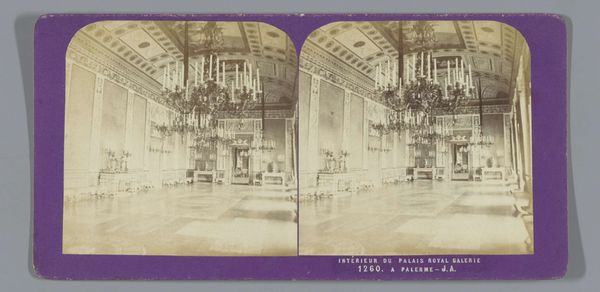 This photograph by Jean Andrieu captures the interior of a gallery in the Palacio de San Telmo in Seville. The symmetry of the gallery, with its ornate chandeliers, detailed ceiling, and framed artworks lining the walls, creates a strong sense of perspective. The composition draws the eye down the long corridor, emphasizing the architectural structure and the placement of objects within the space. This arrangement invites us to consider the interplay between display and perception. The receding lines and the graded light play with depth, positioning the viewer at a fixed vantage point, as if constructing a stage for observation. Through this calculated arrangement, Andrieu prompts us to examine how space is constructed and how we, as viewers, are integrated into this structure. The photograph not only captures a place, but also proposes a way of seeing.