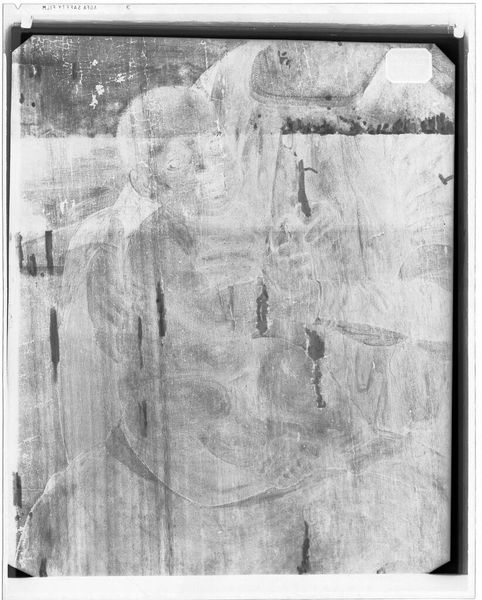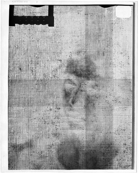 Editor: This X-radiograph of Poussin's "Holy Family" reveals so much about the underlying structure. What do you see in this image beyond just the figures, in terms of the materials used to create the original painting? Curator: The X-radiograph allows us to consider the canvas itself, the weave and texture, as crucial to Poussin's process. We are getting at the means of production. How did the artist's studio or available materials influence the final form? Editor: It’s fascinating to think about those limitations and choices, isn't it? The materiality really shifts my perspective. Curator: Exactly! It challenges the idea of the artist as purely a creator of ideas. We see labor, materiality, and, perhaps, the social context of art-making.