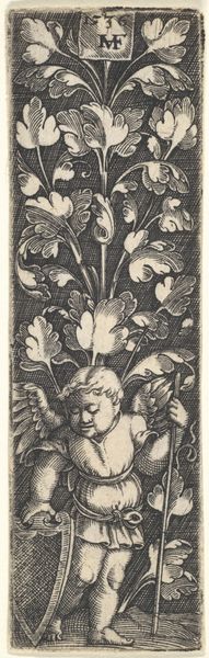 This ornament print shows a symmetrical pattern of leafy tendrils, with putti cavorting among them. It was made at an unknown date by an anonymous artist, using the intaglio technique. The intaglio process involves incising an image into a metal plate, usually copper, using tools or acid. Ink is then forced into these grooves, the surface wiped clean, and the image transferred to paper under high pressure. The resulting print bears the mark of this process in the slightly raised lines of ink, a testament to the labor involved. Ornament prints like this one served as a visual vocabulary for artisans and designers. They were crucial to the standardization of styles and patterns in the early modern era. This standardization, in turn, was essential to the expansion of manufacturing. Next time you see such a print, remember that it isn't just a pretty picture; it's a record of craft knowledge, and its dissemination through print culture.