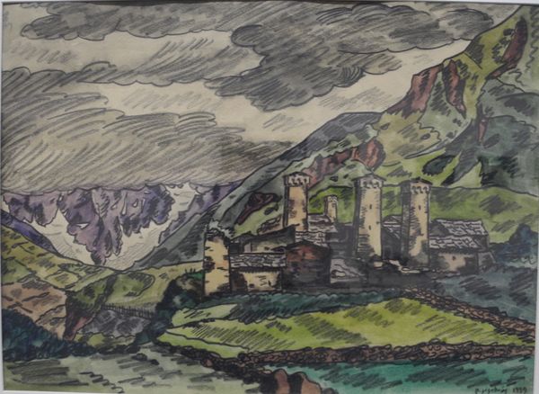 Louay Kayyali made this painting, “Maaloula,” using oils on canvas. The painting’s most striking element is its texture. Look closely, and you’ll notice how the brushstrokes build up a palpable surface. In areas like the sky and mountains, Kayyali applies the paint with a dry brush, creating a granular effect. This not only mimics the rough texture of the landscape itself, but also reflects the labor involved in the painting’s creation. The color scheme also speaks volumes. The muted blues and grays create a somber atmosphere, perhaps indicative of the social and political climate of the time. The repetitive strokes might also represent the monotony and hardship faced by working-class people in the region. By emphasizing the materiality and process behind “Maaloula,” we can appreciate how it transcends mere representation, becoming a powerful statement about place, labor, and the human condition.