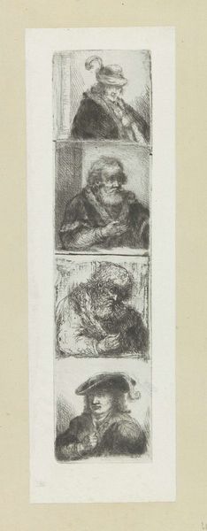 Jan Chalon created this tiny etching of a hermit using black ink. The composition is strikingly simple. We see a figure, presumably the hermit, rendered with dense, almost frantic lines that define his hooded form and the rough texture of his beard. The use of line is particularly interesting: it's not descriptive in a conventional sense but evocative. The lines create a sense of depth and shadow. The hermit almost emerges from the darkness, illuminated by a light source that is not seen. The figure's downcast gaze directs our attention inward, reinforcing the theme of contemplation and seclusion. It offers a glimpse into the late 18th-century fascination with introspection and the sublime, challenging Enlightenment ideals of reason and progress through this intimate portrayal of solitude. Ultimately, it is the raw and gestural quality of the lines that speaks to me, capturing a sense of the human spirit in isolation. The marks are not just representational; they embody the very act of seeking meaning in a world increasingly defined by change.