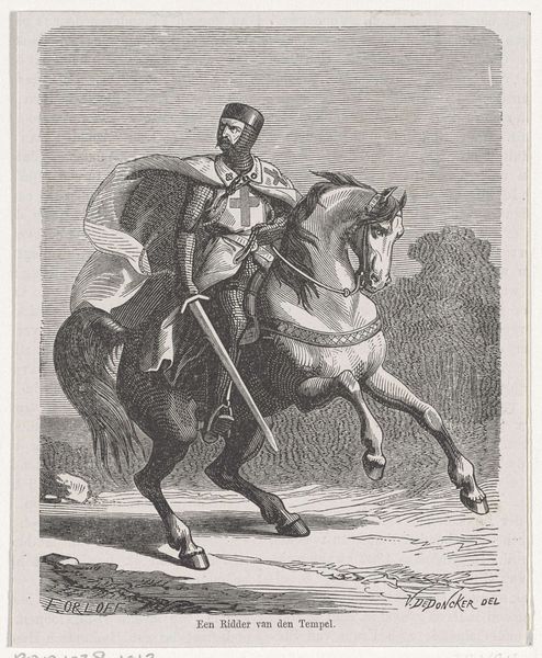 Editor: Here we have Dominique Fabronius’ *The Bugle Call*, medium unknown, and undated. It depicts a man on horseback playing a bugle. The monochromatic palette gives it a somber feel. What stands out to you? Curator: I see the material conditions of war romanticized through the printmaking process. Consider the labor involved in both the military action depicted and the creation of this image. Who consumed this, and what purpose did it serve in shaping their understanding of conflict? Editor: That’s a perspective I hadn't considered. It makes you think about the societal impact beyond the image itself. Thanks! Curator: Indeed, art always exists within a web of production and consumption.