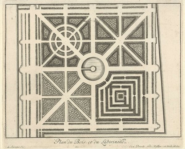Editor: Here we have Giovanni Battista Piranesi’s "Chess and Nosetto floor in mosaic at the House of Society", a print of, well, a floor. It looks incredibly detailed and precise, almost mathematical. What strikes you about it? Curator: For me, it’s the process. Piranesi wasn't just depicting; he was documenting the labor and skill embedded in this Roman mosaic floor. He's reminding us that someone quarried the stone, shaped it, laid it piece by piece... Editor: Right, it makes you think about the hands involved. How does that change our understanding of the artwork itself? Curator: By considering the physical act of its creation, we move away from purely aesthetic appreciation. We can start to understand the social and economic context that allowed such artistry to flourish. The labor required signifies wealth, power and organization. Was this craftmanship reserved for the elite? Editor: Interesting! The floor becomes a signifier of social status through the material and means necessary to make it. So, looking at the print now, it's not just an image of an ancient design, but also evidence of this historical means of production, wouldn’t you say? Curator: Precisely. Piranesi is making visible what’s often unseen, and thus, forgotten: the physical and social process behind the object. Editor: That’s given me a completely new perspective. I'll definitely think differently about mosaics – and prints – from now on! Curator: Likewise. It is fascinating how an object could reveal so much when approached by considering production processes and societal structures.