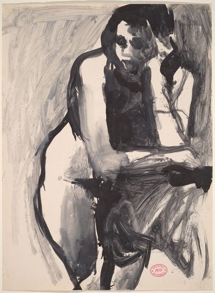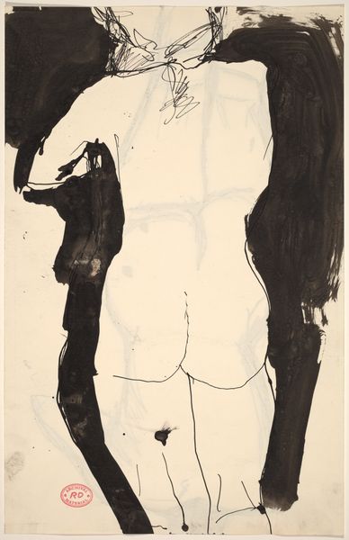 Richard Diebenkorn made this ink drawing of a female nude sometime in the mid-twentieth century, and it's all about the push and pull of dark and light. It's a study in contrasts, not just visually but also in how it feels. Diebenkorn lays down these big, bold strokes of ink, and then he lets the paper breathe, leaving these ghostly, pale areas. Look at the way the figure emerges from the dark background, how the light catches her shoulder and the curve of her hip. It’s like she’s stepping out of the shadows, but she’s still very much a part of them. And those drips and splatters? They’re not mistakes; they’re part of the process, part of the energy of the drawing. I think of artists like Franz Kline, who were also exploring the power of black and white and the expressive potential of gesture. But Diebenkorn brings a certain tenderness to it, a vulnerability that makes it feel deeply personal. For me, this piece is not just about the figure but about the act of seeing, of finding beauty in the unexpected.
